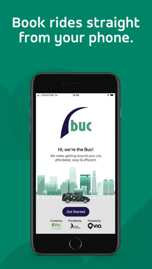 -Using the Buc app, input your address and we’ll match you with a vehicle going your way. We’ll pick you up on a nearby corner and drop you off within a short walk of your chosen destination.