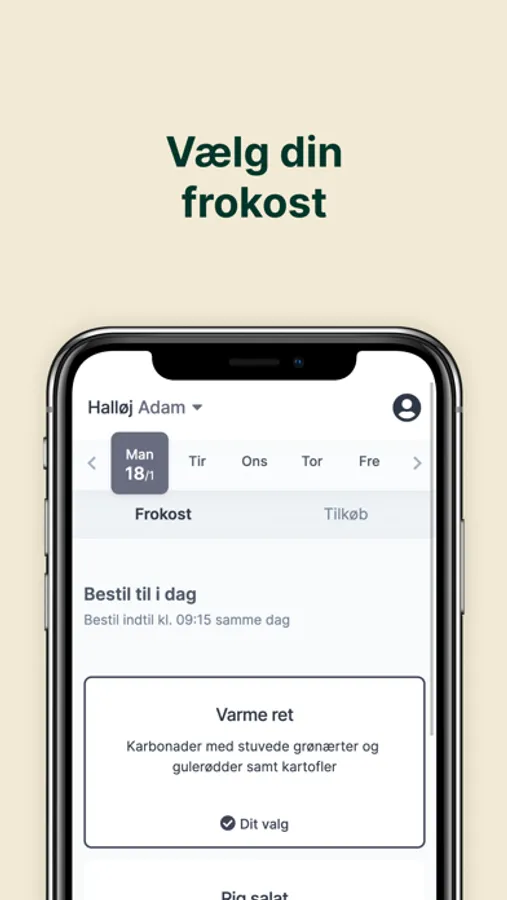 Download appen og gå på opdagelse i din virksomheds frokostordning! Vi har gjort det nemt for dig at vælge hvad du, som medarbejder skal have og spise til frokost, så køkkenet kan fokusere på at forberede din frokost.
