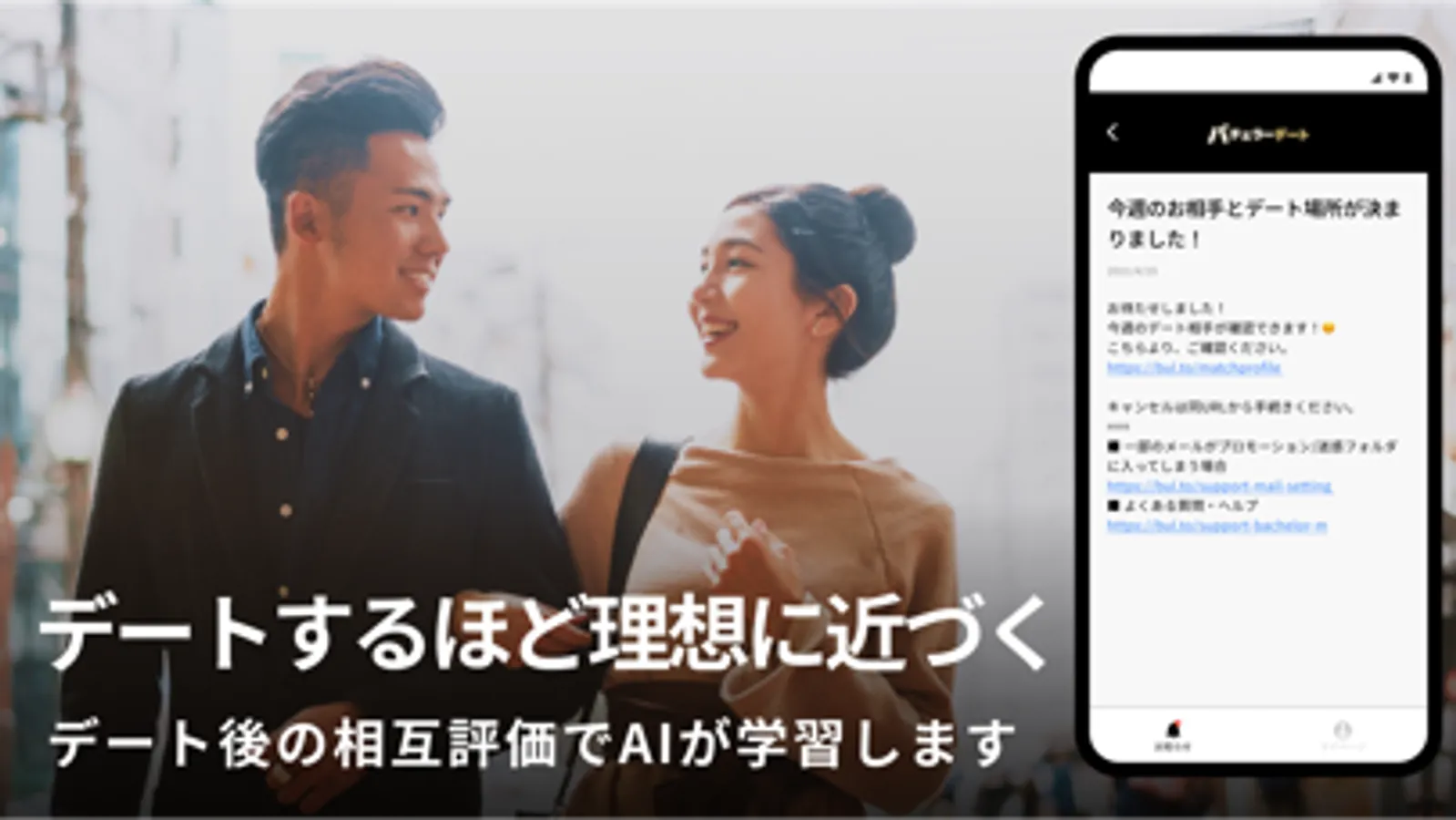 バチェラーデートは、恋活・婚活のための「探さずに出会える、審査制マッチングアプリ」です。