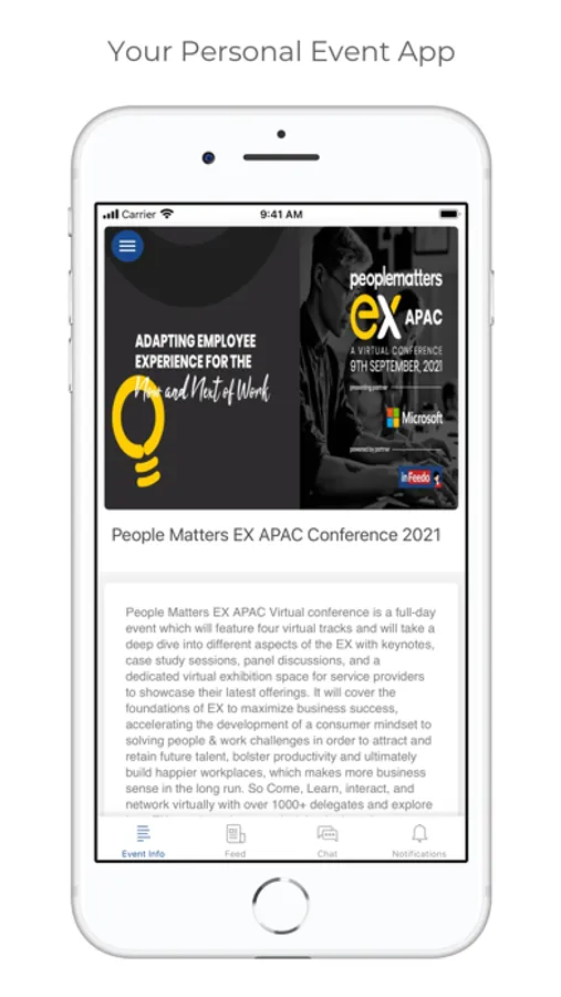 Use the People Matters EX APAC Virtual conference app to enhance your event experience by connecting with the right people, maximizing your time at the event. The app will help you discover, connect and chat with attendees at the Conference.This app will be your companion not only during the event but also before and after the conference, helping you to: