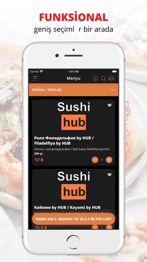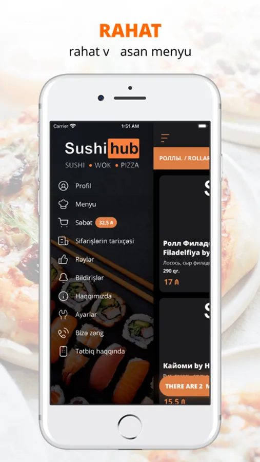 Приложение Sushi Hub | Баку — это удобный способ заказа еды домой или в офис! Мы готовим наши блюда из качественных свежих ингредиентов и доставляем еду по Баку быстро и бережно.