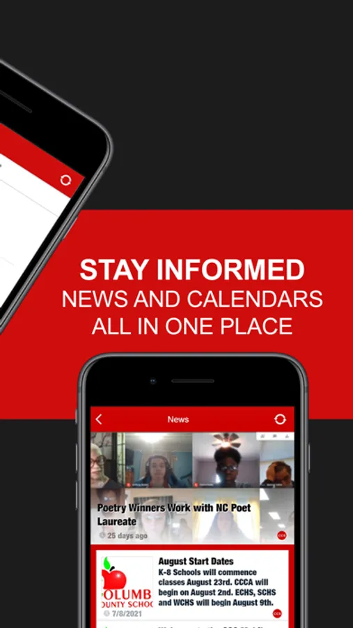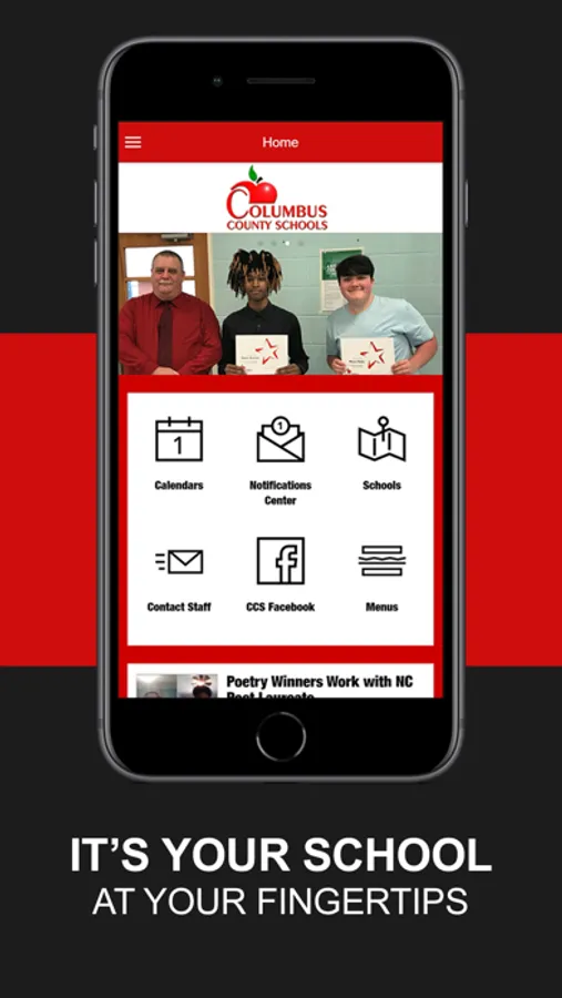 With the Columbus County Schools mobile app, your school district comes alive with the touch of a button. Easily navigate through current news and events or check out the latest updates with social media. Quickly retrieve contact information, board meeting audio, live sports video, sports scores, lunch menus, and more! It’s your school district available at your fingertips.