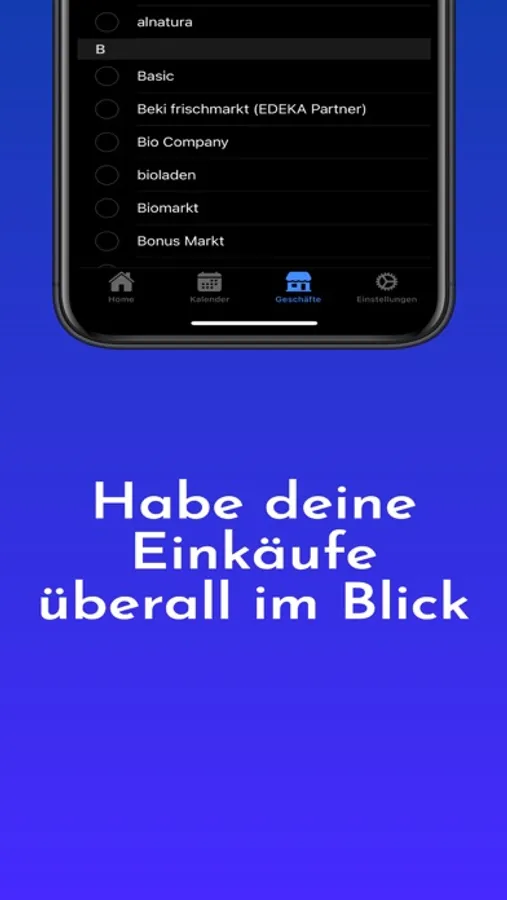 • Wähle bereits vorhandene Geschäfte