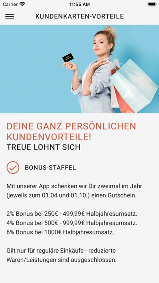 2. Gutscheine: Bling! Bling! Wir schicken Dir Deine persönlichen Vorteile direkt per Push-Nachricht, wie z.B. €-Coupons, Rabatte, Einkaufsvorteile, Give-aways und kleine Geschenke. Deine Gutscheine kannst Du direkt über die App in unserem Haus einlösen.