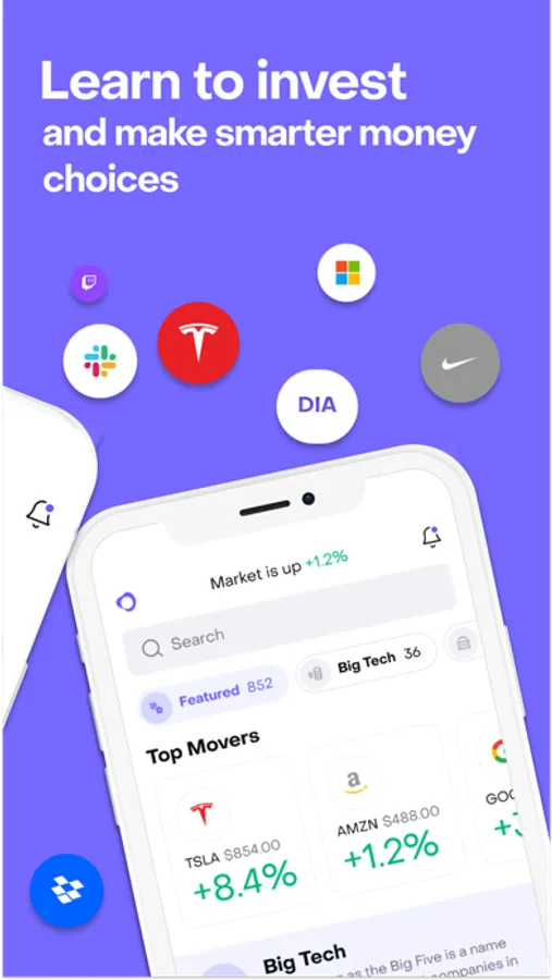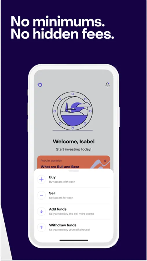 Buy stocks, fractional shares, or ETFs from an easy-to-use app. You don’t need a lot of money to begin. You can invest $5, $1000, or $10000; the choice is yours.