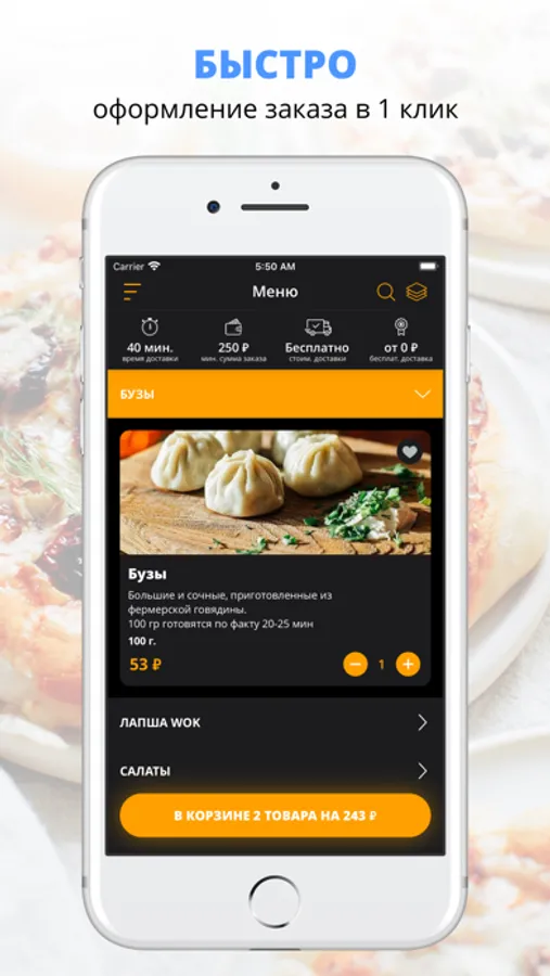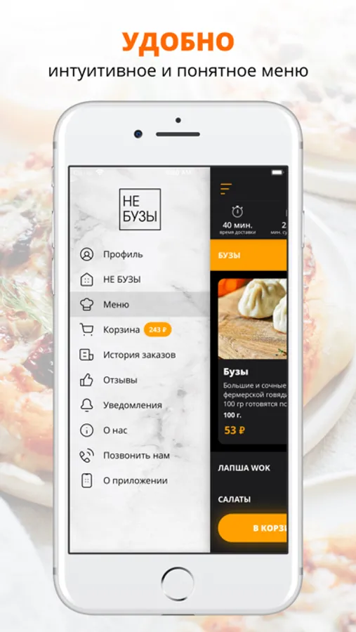 Разнообразное меню! У нас работают профессиональные повара, а курьеры приятно порадуют вежливостью и быстрой доставкой.