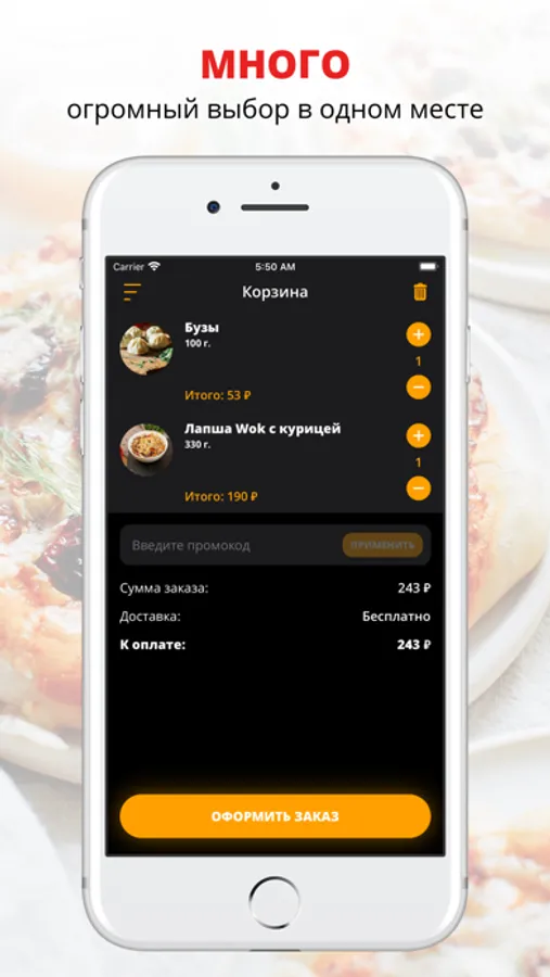 Скачивайте наше приложение, оформляйте заказ и наслаждайтесь любимой едой, где бы Вы ни были! Приятного аппетита!