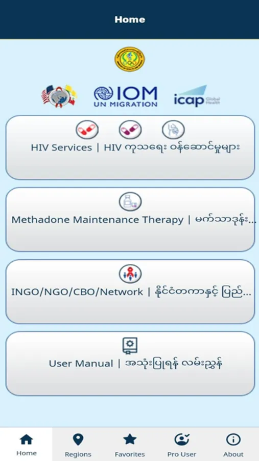 In close collaboration with National AIDS Programme (NAP)/ Ministry of Health and Sports (MOHS) and with the technical assistance of ICAP at Columbia University in Myanmar funded by the U.S. President’s Emergency Plan for AIDS Relief (PEPFAR) through the U.S. Centers for Disease Control and Prevention (CDC), this application was developed based on the “HIV Services Directory, Myanmar, January 2020” developed by International Organization for Migration (IOM).