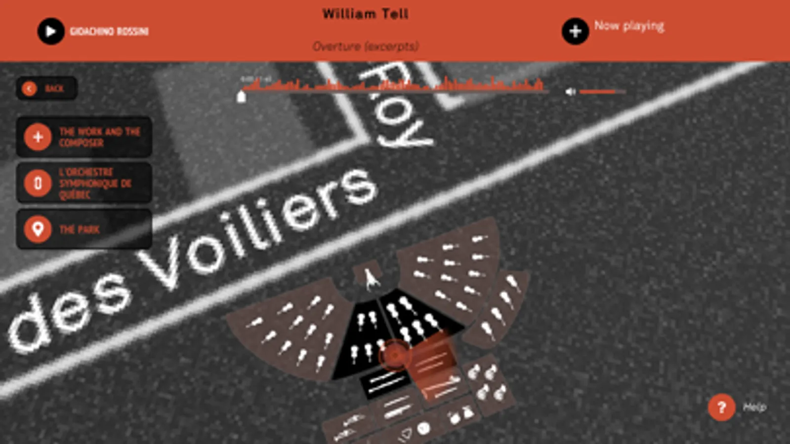 Download the app to your smartphone, turn on the GPS, and you’ll be able to listen to the various instruments of the orchestra as if you were on stage, just by walking around the park.