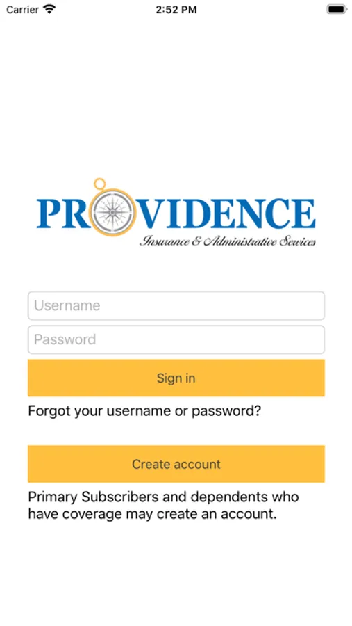 You must sign in to access the app’s features. Only members whose employers use Providence Insurance & Administrative