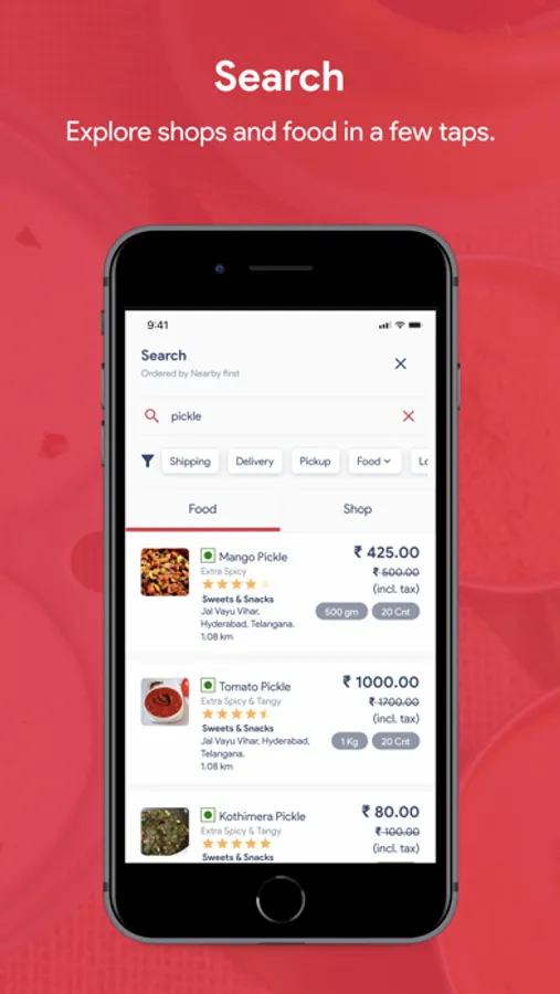 Uppu Karam is a food aggregator application which helps to connect customers and sellers. Sellers offer a variety of food options like Veg Pickles, Non-Veg Pickles, Sweets, Snacks, Powder/Paste, Crackers and a lot more. Customers can order for pickup, door delivery (if the shop is nearby), domestic shipping (within India) or international shipping.