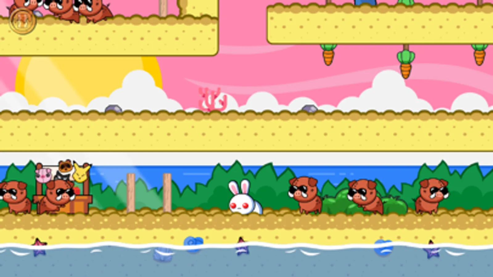A Pretty Odd Bunny is a 2D stealth platformer about a rabbit who likes eating pigs. You play as a red-eyed rabbit and help him reach the pig at the end of the levels without letting other rabbits see you!