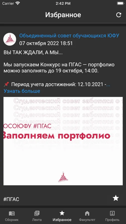 Все новости университета будут доступны тебе в отдельной вкладе, и лента будет регулярно обновляться. Ты даже можешь подписаться только на интересные новости.