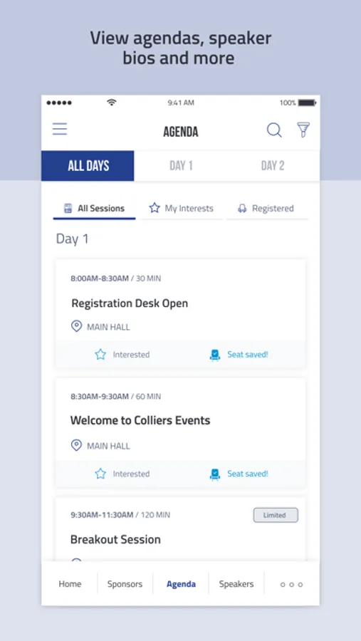 The Colliers U.S. Events app can be used to view current event agendas, read up on keynote speakers, find host hotel information, connect with other attendees and more.