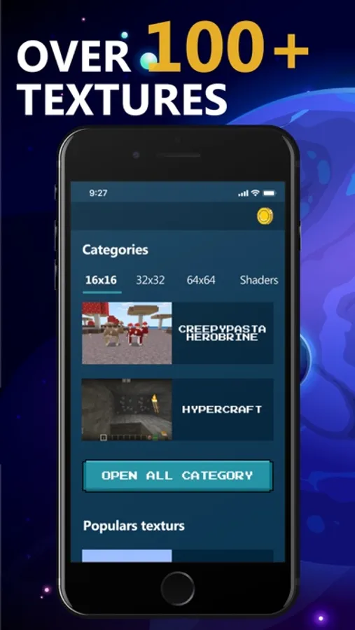 • Top popular and best Textures for Minecraft PE with automatic installation in the game.