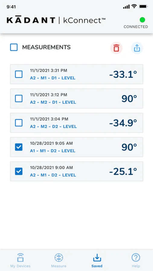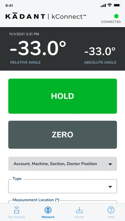 This app connects your Kadant AngleSet™ gauge with Bluetooth output to your iPhone. The Kadant AngleSet gauge is used to measure proper angles for setting doctor, roll cleaning, and scraping blades. The app features an active angle display from the gauge, hold feature, zero feature for relative angle measurements, type of measurement being taken, measurement location, and memory storage of angle readings. The user can also add free text metadata for each measurement (account, machine, section/application). Each measurement taken along with metadata can be saved. Saved measurements will be visible on the measurements screen and will be listed in order of most recent to oldest. Saved angle readings can be sent via email as a CSV file.