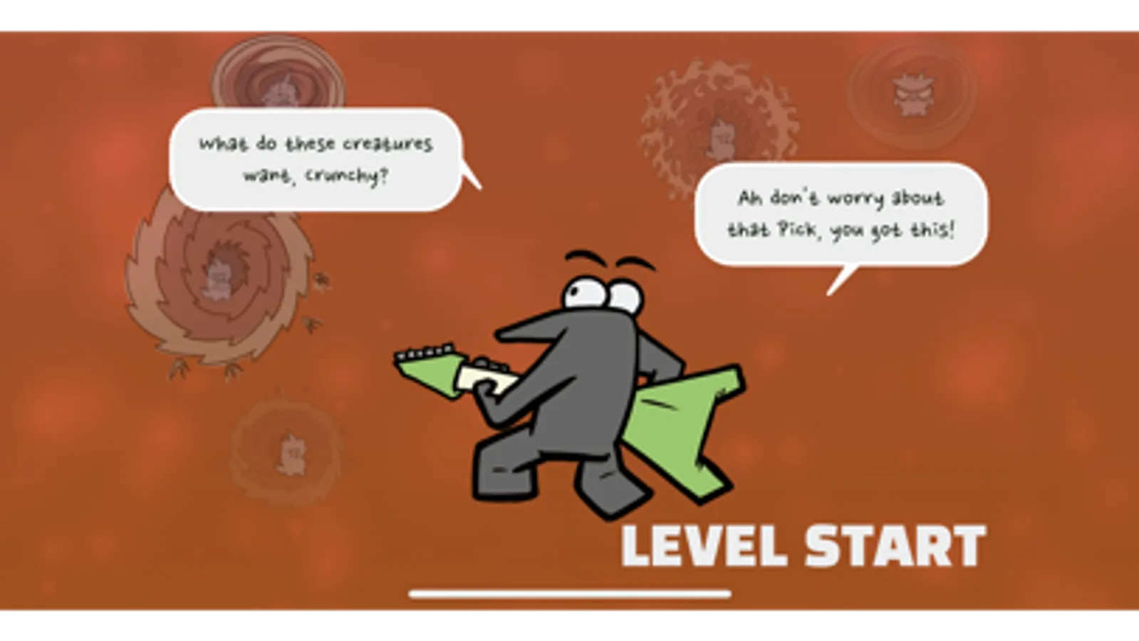 **Crunchy** the guitar is an old friend of Pick's family now helping Pick learn to be a confident musician.