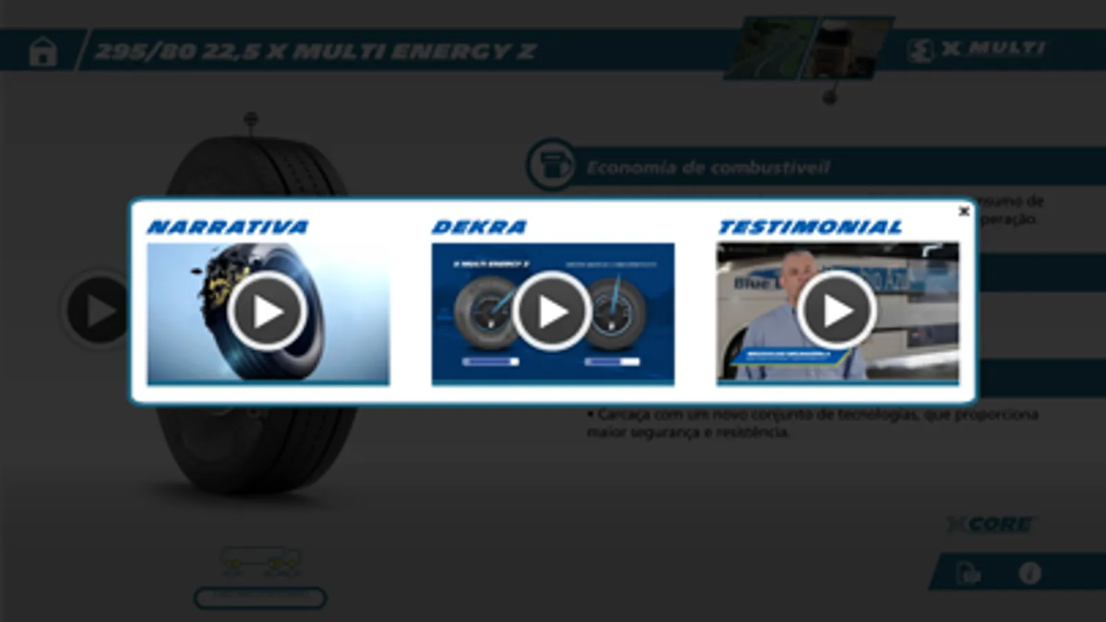 Aplicativo Folheteria Digital, apresentando o novo pneu para caminhões e ônibus, 295/80 R22,5 X Multi Energy Z e o novo Agilis 3, pneu para Vans e Furgões.
