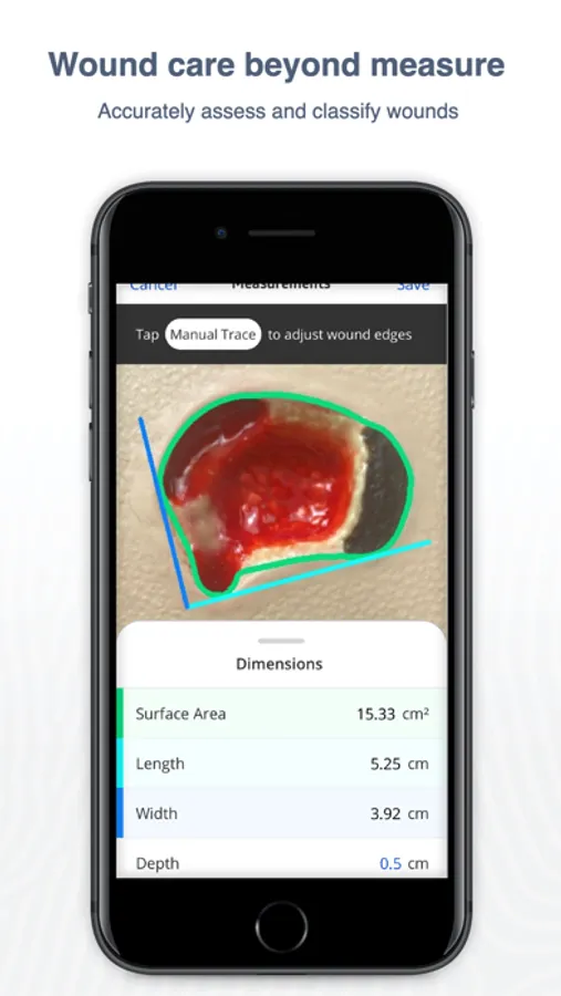 • Accurately measure wounds and track healing progress over time