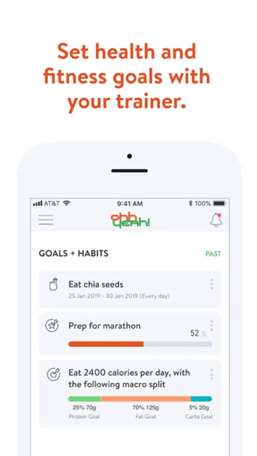 With the Ohh Yeah Fitness App, you can start tracking your workouts and meals, measuring results, and achieving your fitness goals, all with the help of your personal trainer.