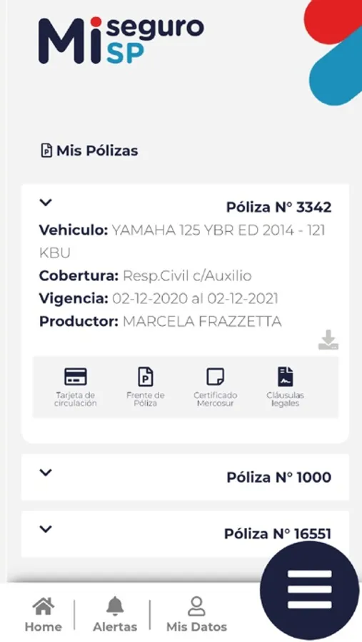 - Descargar frente de póliza, certificado de Mercosur y cláusulas legales.
