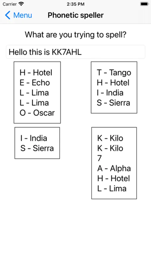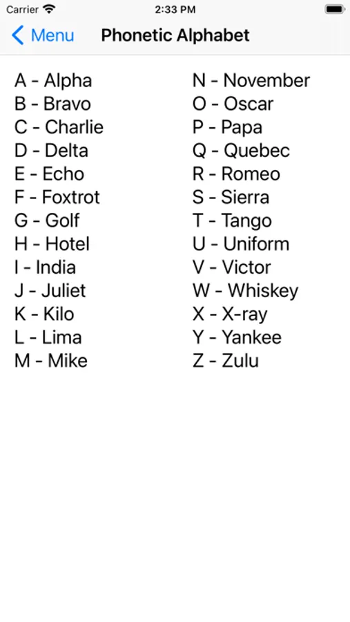 Radio Reference is a handy app for information you might need while communicating over your radio. Need to spell something phonetically? Type your word or phrase to get the phonetic spelling. Or view the whole phonetic alphabet. Heard a Q signal or other abbreviation you don't recognize? Look it up here. Let me know what other stuff you'd like to see in here.