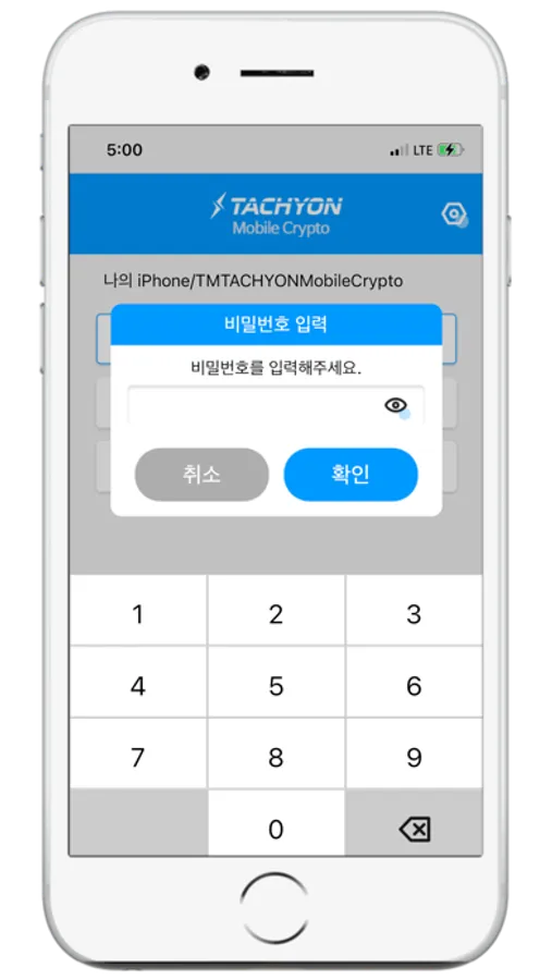 - 파일 앱 'TACHYON Mobile Crypto' 폴더 안의 사용자 파일( 문서, 이미지 등 )을 암호화 및 복호화 할 수 있습니다.