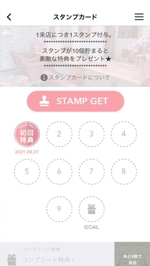 たくさん貯めていただくと次回使える特典をご用意しております。