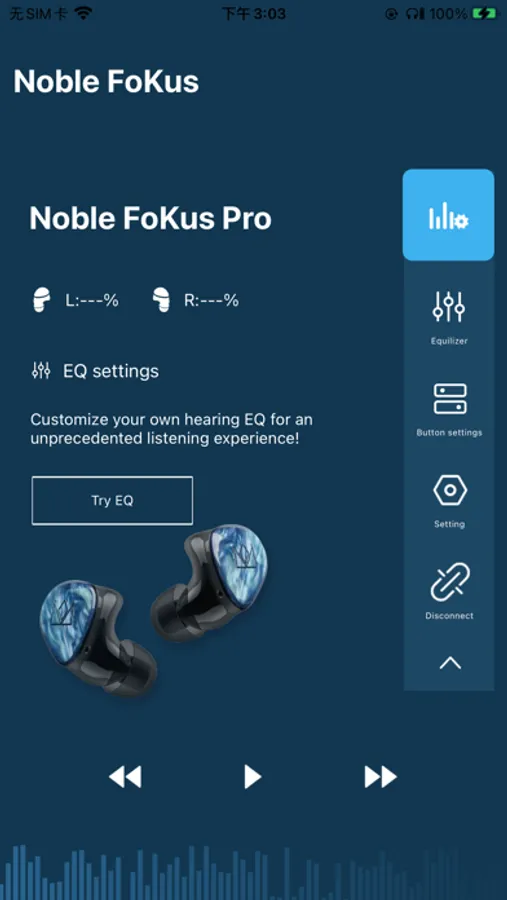 The Noble FoKus app is a free app to be used with the Noble FoKus line of true wireless stereo headphones. In addition to a customizable 10 band equalizer, the Noble FoKus app includes a hearing test function that utilizes your personal hearing test results to adjust the equalizer for an unprecedented listening experience. The app also allows the user to modify and assign touch control functions and to monitor each earbud’s battery level.