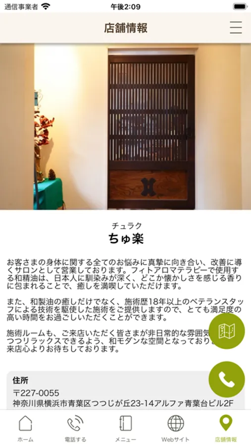 店舗のマップが表示され、地図アプリとも連携しているので、初めてのご来店の時も簡単に見つけることができます。