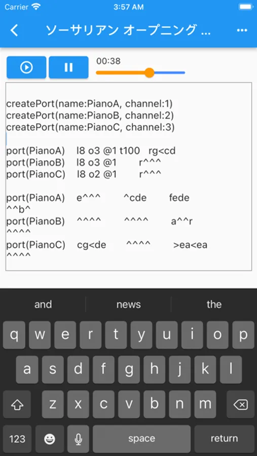 MML(Music Macro Language)を使って音楽を作成、再生するアプリです