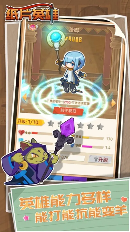 1.利用纸片英雄和伙伴,前往关卡挑战,获得纸片英雄碎片,伙伴,道具资源。用来激活更多的纸片英雄和伙伴。