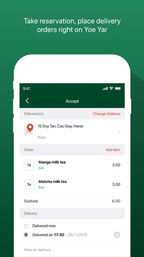 • Make reservation, place delivery orders right on YoeYarApp
