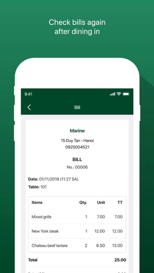 • Bills of restaurants on YoeYarApp will be sent to your smartphone right after you complete payment
