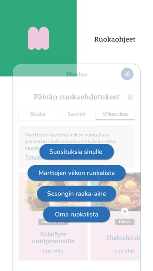 Sovelluksesta löytyy jo yli 150 ruokaohjetta ja päivitämme sesongin herkkujen reseptejä koko ajan lisää.