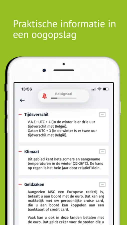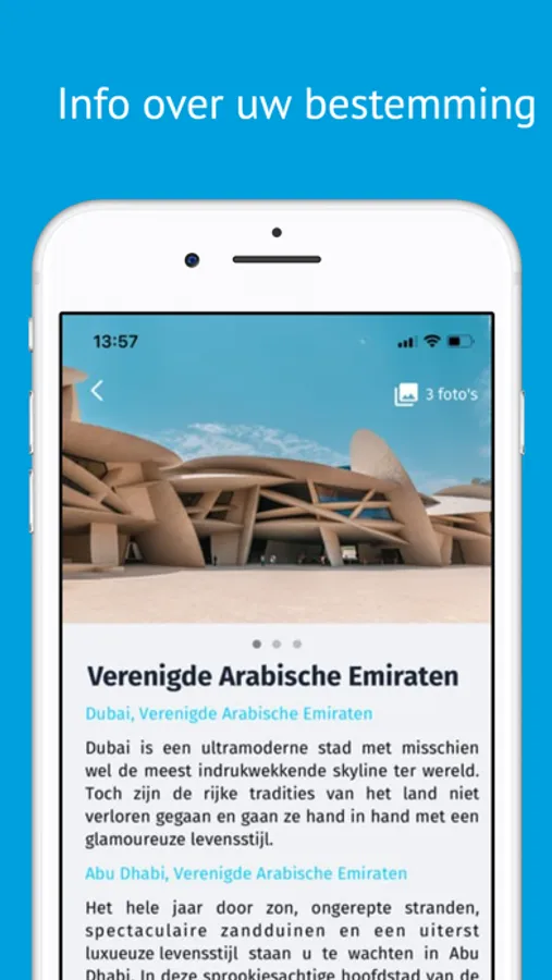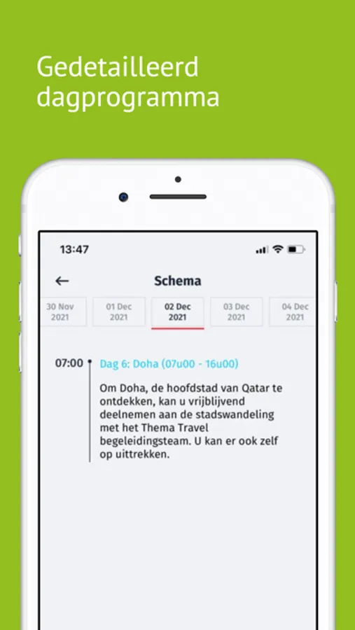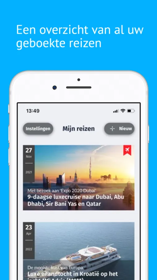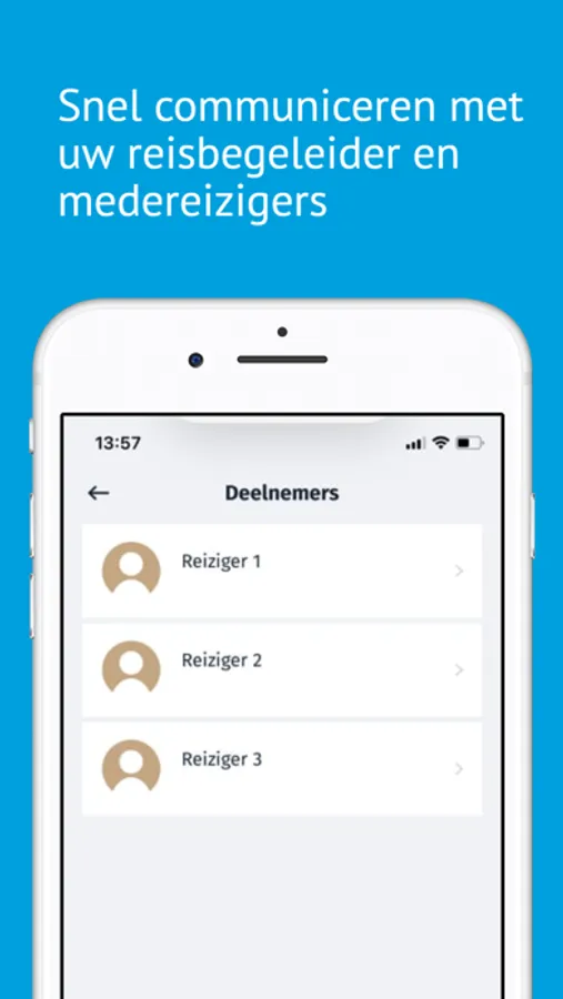 Naast een overzicht van al je geboekte reizen vind je per reis meer info over de bestemming, een gedetailleerd dagprogramma, praktische informatie in een oogopslag, … Je kan ook snel communiceren met je reisbegeleider en medereizigers en ontvangt push notificaties voor belangrijke aankondigingen. Kortom, deze app is het startpunt van jouw zorgeloze vakantie!