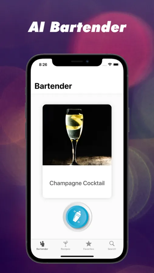 - AI bartender: click the shaker button to get drinks, check the recipes or show it to your bartender.