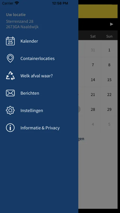 Met deze app vergeet u nooit meer om uw container buiten te zetten. In de Afval Westland app kunt u bij de afvalkalender instellen of u een pushmelding wilt ontvangen voorafgaand aan een inzameldag. Ook kunt u de locatie van verzamelcontainers in de buurt bekijken, bijvoorbeeld voor glas, textiel of de milieustraat. Verder bevat de app een afvalscheidingswijzer, een overzicht van de contactgegevens van de gemeente Westland.