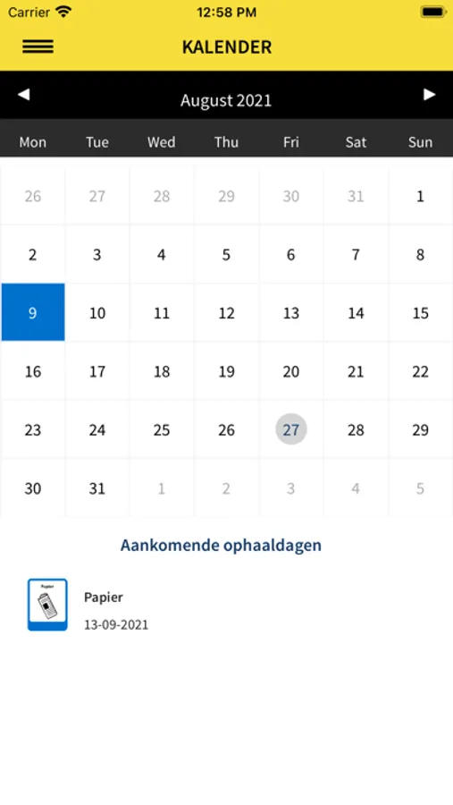 De afvalkalender toont de inzameldagen op uw adres van GFT- en restafval, oud papier, snoeiafval, plastic verpakkingsafval & kerstbomen. Hiervoor dient u eenmalig uw adresgegevens in te voeren. U kunt zelf instellen voor welke afvalstromen u een melding wil ontvangen voorafgaand aan een inzameldag.
