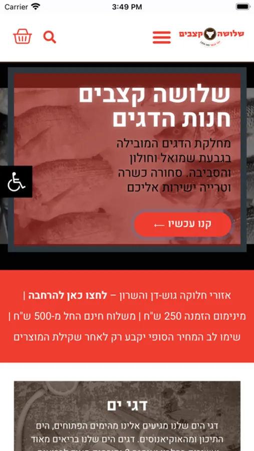 נעים להכיר אנחנו במחלקת הדגים של שלושה קצבים, אנחנו שמחים למכור ולתת לכם חווית רכישה מקוונת דרך אתר האינטרנט שלנו. יש לנו קשרים הדוקים עם הדייגים וסוחרי הדגים הטובים ביותר בישראל, ואנחנו דואגים לספק לכם סחורה טרייה ואיכותית במשלוח בקירור עד הבית.