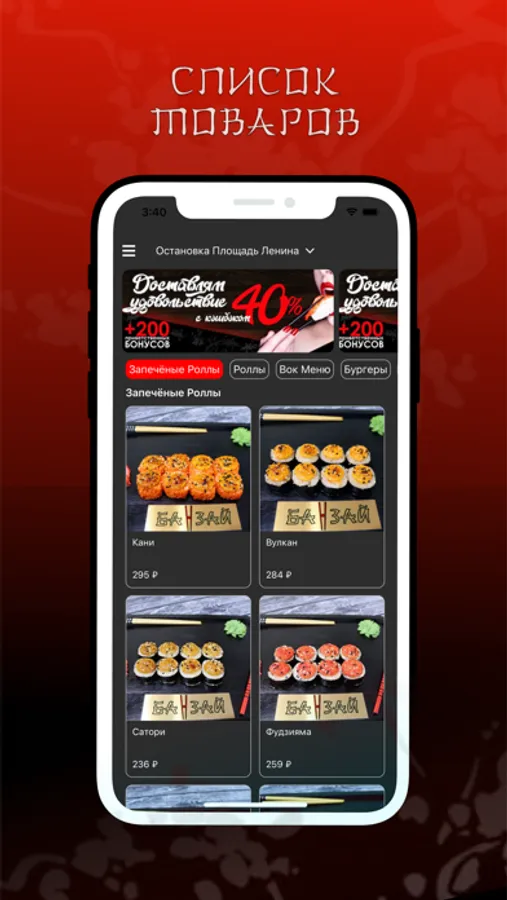 Кэшбэк 40% на первые 3 заказа действует на все меню. Баллами можно оплатить до 100% заказа.