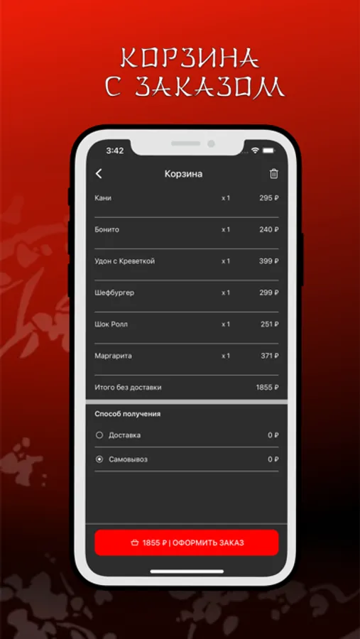 Заказывайте самовывоз или доставку и оплачивайте в приложении. Следите за историей заказов и бонусным счетом.