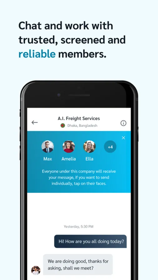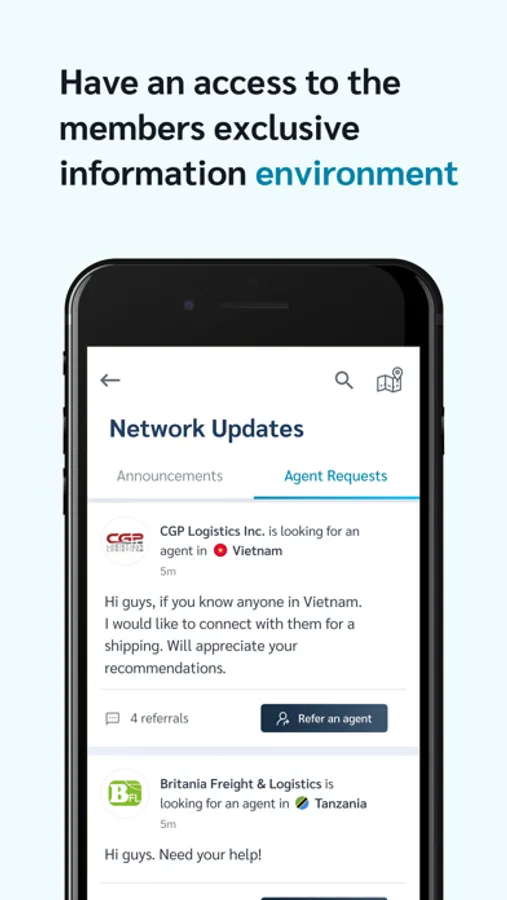With this app, you can easily browse thru all the network members, post announcements on the social wall, message everyone, request & recommend agents, and add unlimited users from your company.