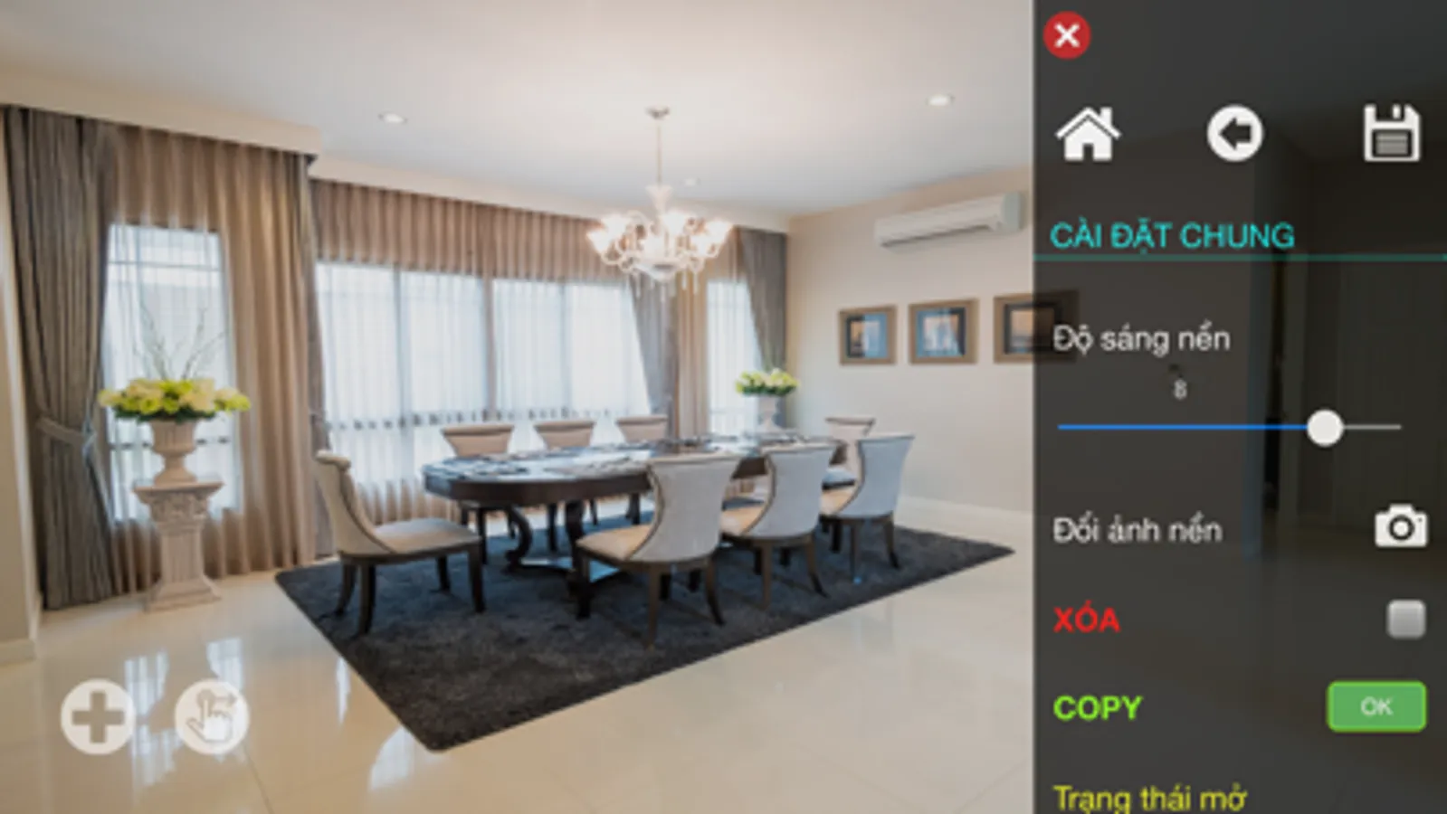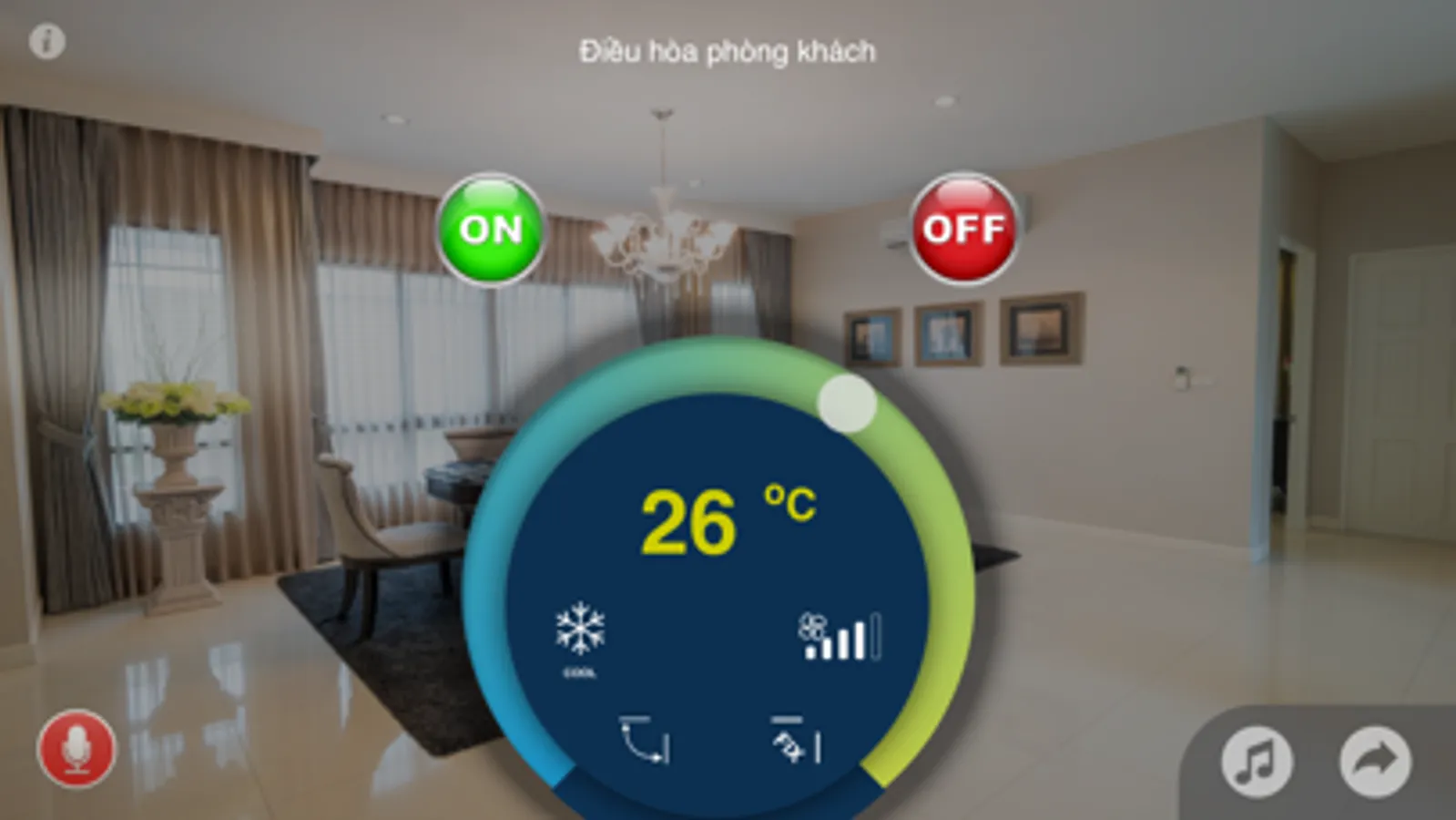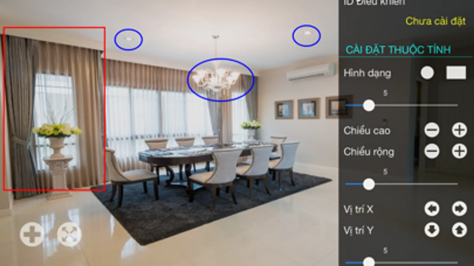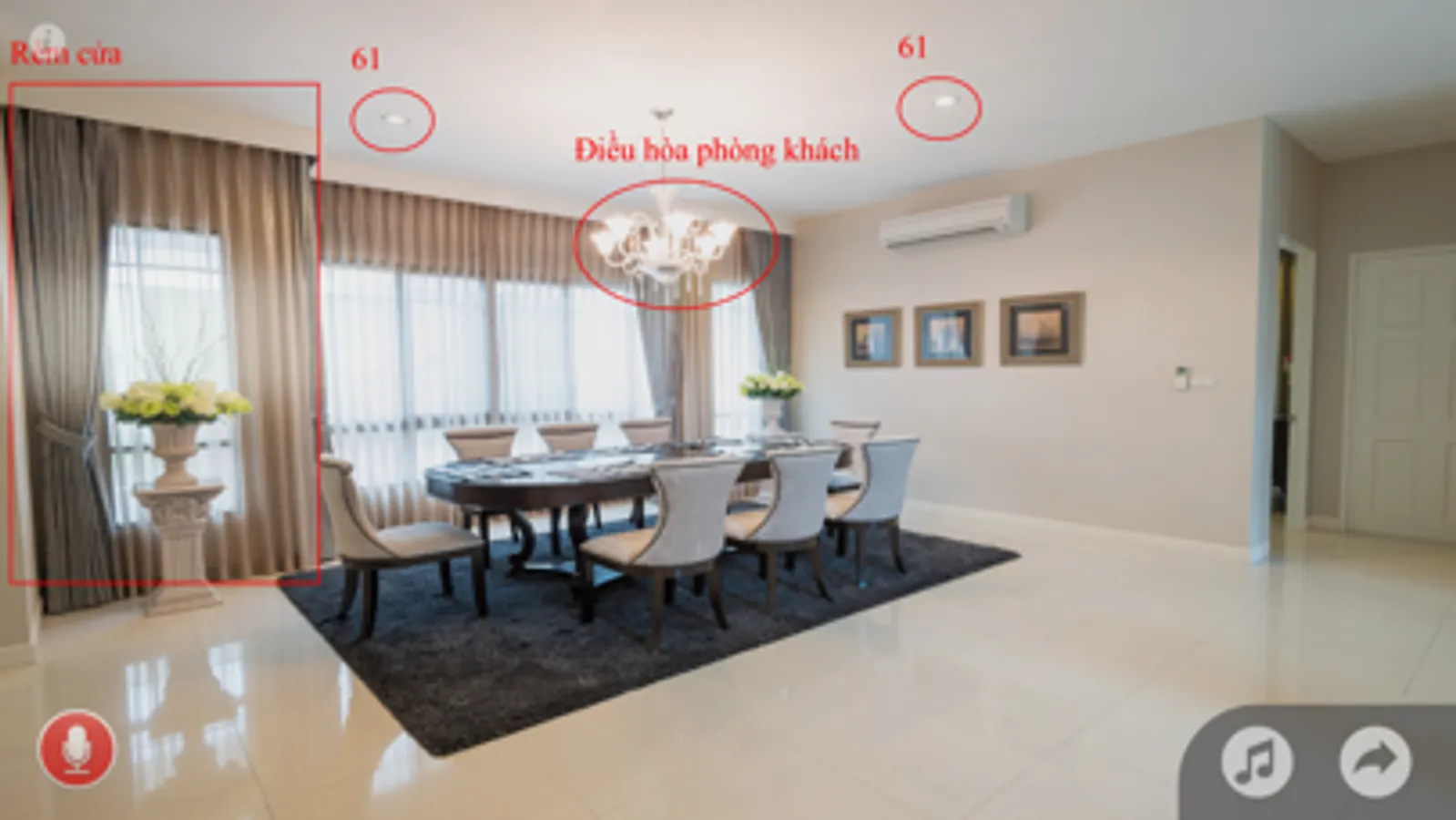 - Chạm vào vị trí hình ảnh bóng đèn, Tivi, điều hòa để điều khiển tắt mở, thay đổi nhiệt độ phòng....