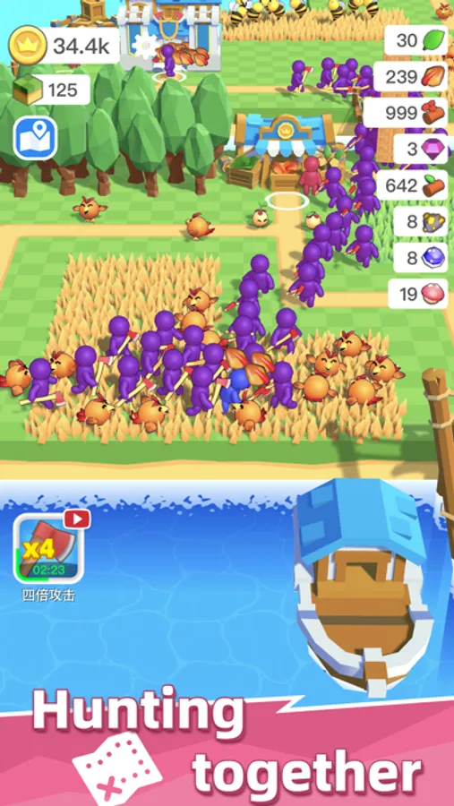 Relax, fight monsters, dig, hire workers and build bigger warehouses in this free exciting farm game. Participate in many satisfactory activities: cutting down trees, opening treasure boxes, turning turntables, etc. When the harvest season comes, sell your products to businessmen in the town and become the greatest manager on the island.