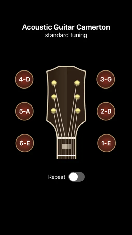 Use this app to play reference guitar sounds. Useful for professional musicians who can tune a guitar by comparing sounds but needs some kind of reference sounds like tuning fork provides. Just select any string you want to tune and compare the sound with your guitar. Use Loop mode to repeat reference sound. Note, that it doesn't have integrated sound analyser like other apps. It doesn't show you how you need to tune your strings.