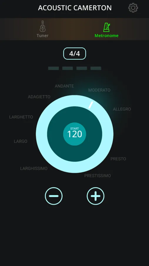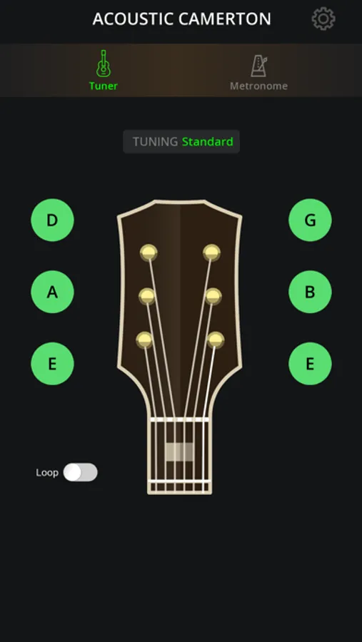 - Acoustic guitar tuner with Standard and Open G tunings.