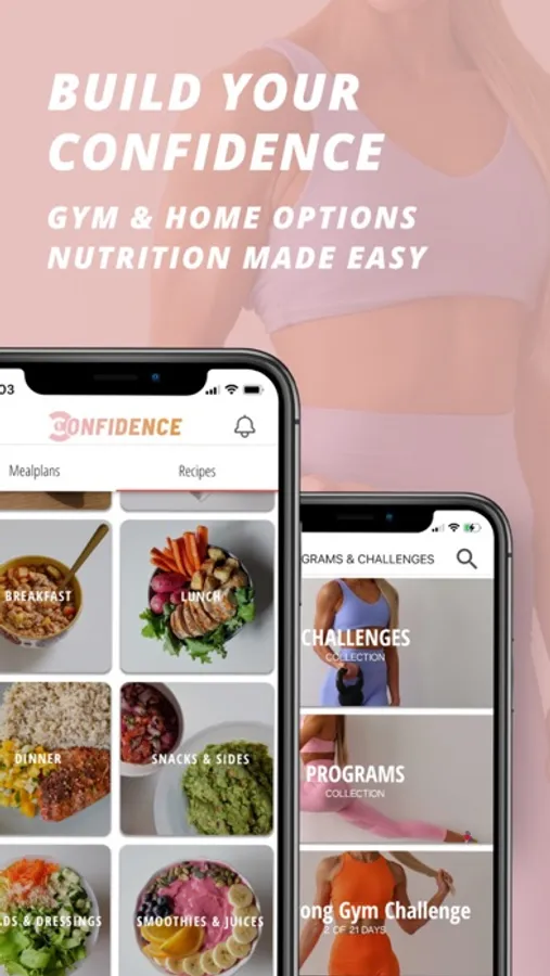 Start with a endless selection of daily workouts or pick from one of our many Programs & Challenges to help you progress in your fitness journey. The Confidence programs will guide you through a structured workout routine everyday to develop a strong physique.