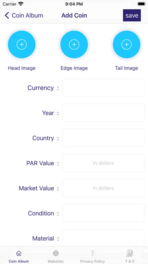 This application will allow you to collect your coins as one complete collection. you can divide your coins to albums, do quick filter by country, year,currency,easily find the desired coin.