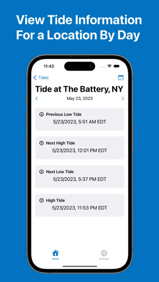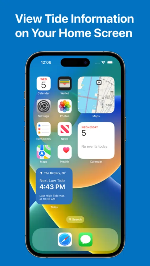 - Quickly glance information about the next major tide event on the Home Screen, Lock Screen, or watch face!